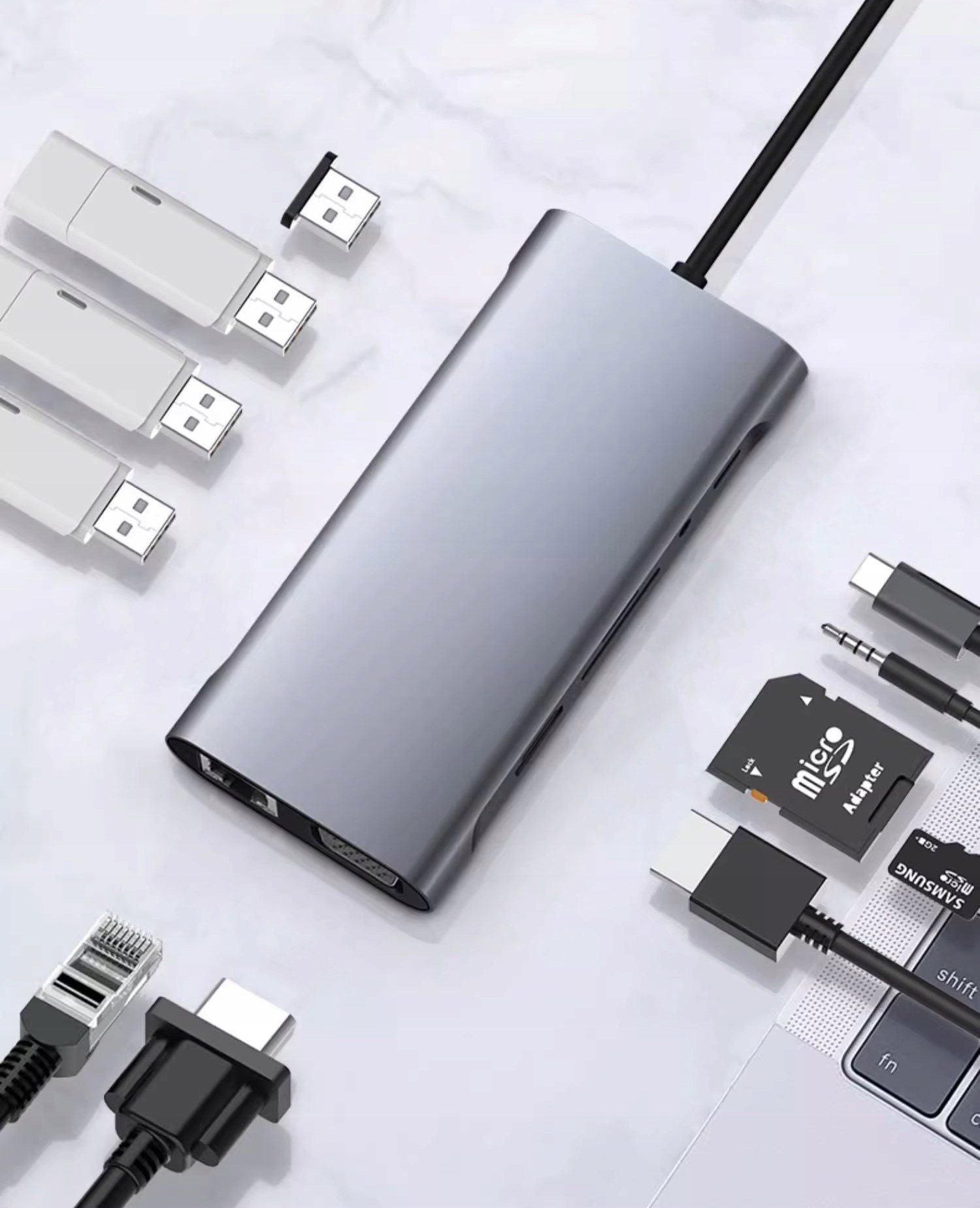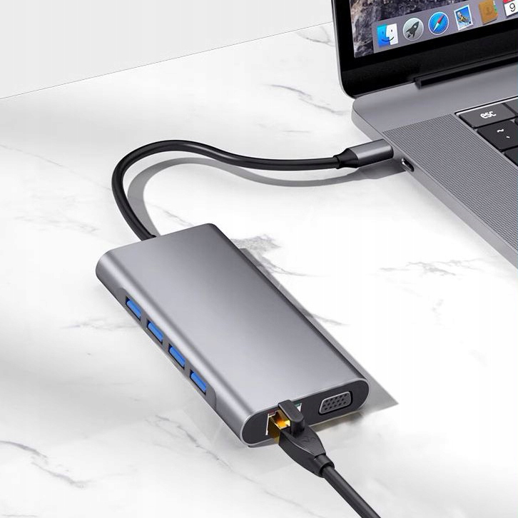 Adapter / HUB z HDMI, VGA (D-SUB), LAN, USB, USB-C PD, SD, MicroSD, AUX