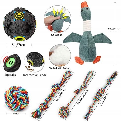 - Zabawa i interakcja – trzy różne zabawki dla szczeniaków (zabawka linowa, piszcząca i zabawka z piłką) poprawiają inteligencję i trening zwierząt domowych. Zabawka dla psów może pomóc w czyszczeniu zębów, uwolnić energię psa i złagodzić stres.