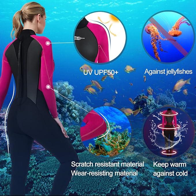 - Utrzymuje ciepło: Kombinezony neoprenowe AONYIYI 3 mm są zaprojektowane tak, aby były ciasne niż zwykłe ubrania, dzięki czemu utrzymują ciepło w zimnej wodzie. Utrzymywanie ciepła nie oznacza, że jest wodoodporny. Woda nadal dostaje się do kombinezonu, ale nie szybko wymieniają ciepła.