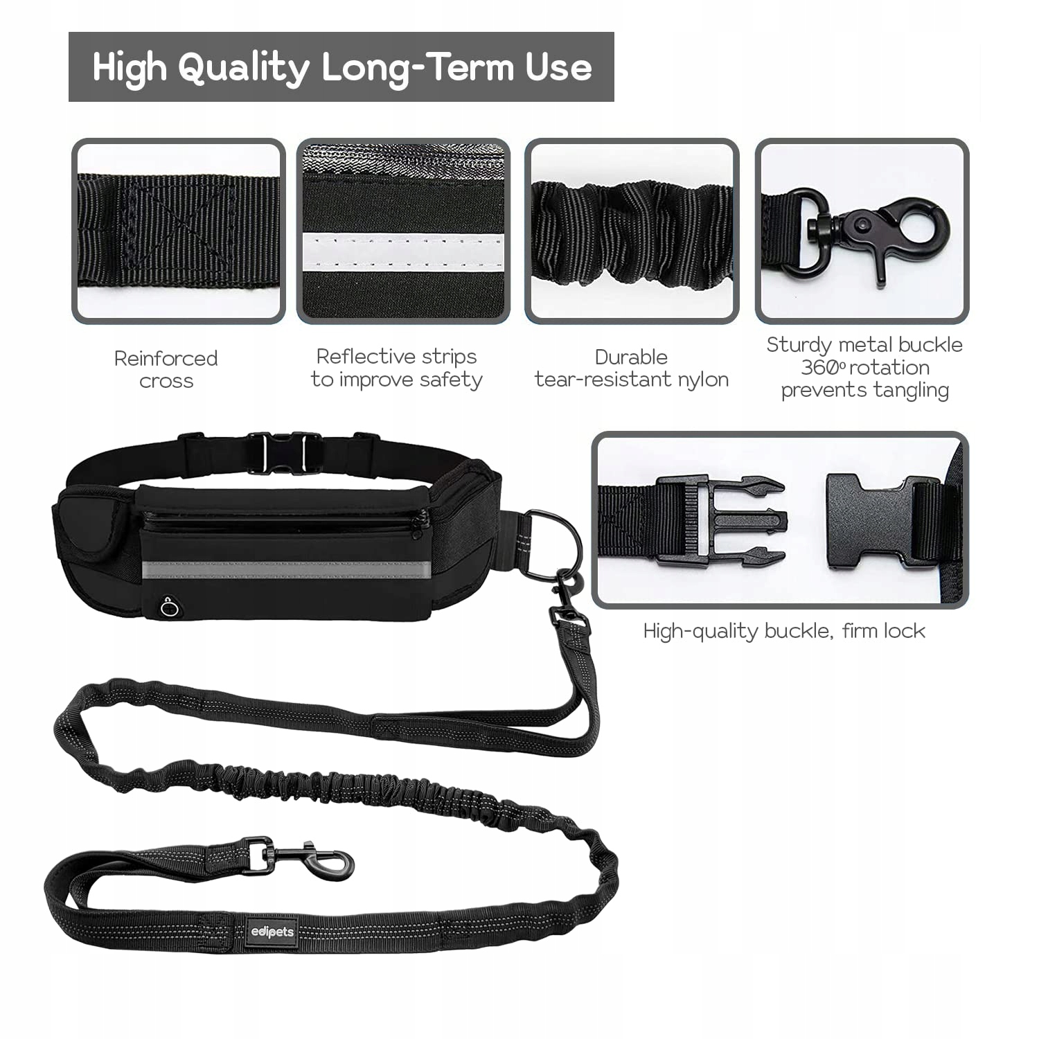 EdiPets Smycz Bungee Pas Biodrowy