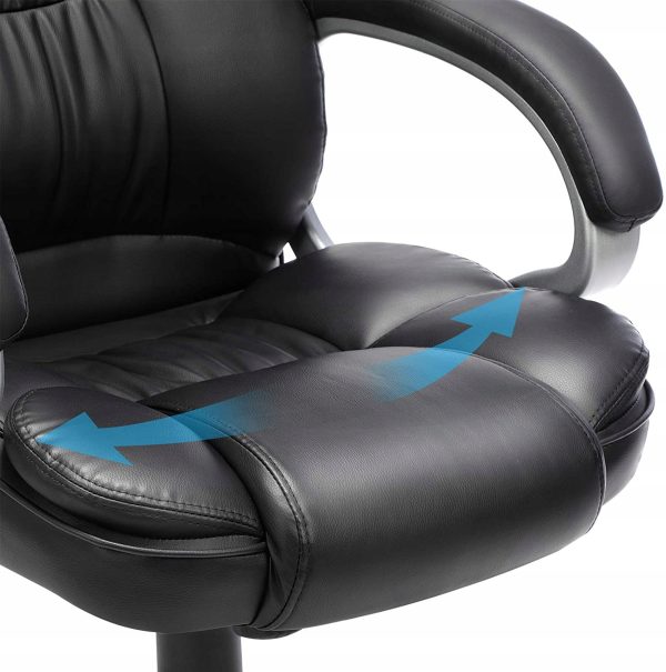 - Wysokiej jakości materiał – wysokiej jakości powierzchnia poliuretanowa jest przyjemna w dotyku i łatwa do czyszczenia. Bardzo gruba tapicerka zapewnia optymalny komfort siedzenia i obiecuje dobrą elastyczność i lepsze dopasowanie. Nie odkształca się łatwo