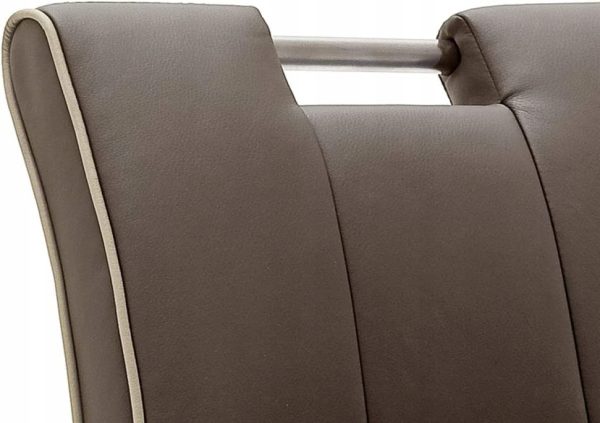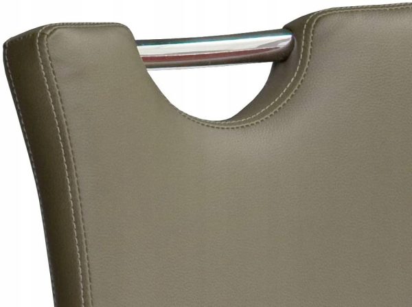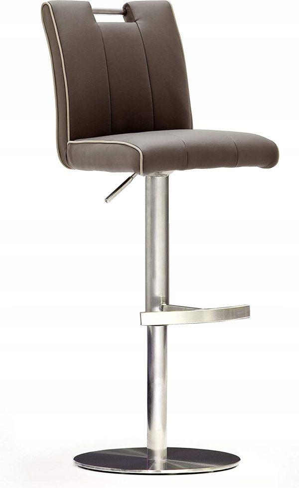 - Połączenie szczotkowanej stali nierdzewnej z pokrowcem wykonanym ze skóry zapewnia chłodną elegancję przed każdym blatem.