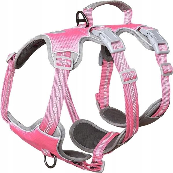 Huntboo Uprząż dla psa, odblaskowa uprząż z wyściełanym uchwytem, wodoszczelna, regulowana kamizelka dla średnich psów, spacerów, ćwiczeń (różowa, M)