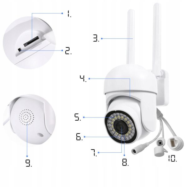 - Funkcja PTZ – obracanie kamery zdalnie lub ręcznie;