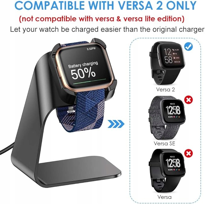 KIMILAR Stacja ładująca kompatybilna z ładowarką Fitbit Versa 2 (nie pasuje do Versa/Versa Lite/SE), stop aluminium, kabel do ładowania USB, stacja dokująca Charger Dock tylko do Versa 2, (czarna)