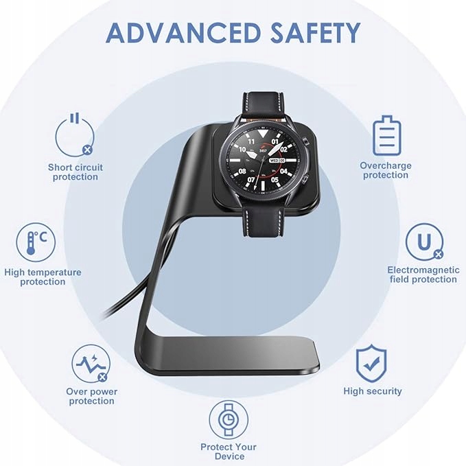 - Zapewnij bezpieczeństwo swojego smartwatcha – odporna na zarysowania poduszka z boku chroni urządzenie przed zadrapaniami, podczas gdy spód jest wyposażony w antypoślizgową podkładkę silikonową, która zapewnia, że ładowarka zegarka pozostaje na miejscu.