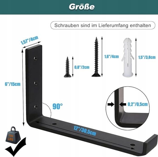 • 【Wytrzymałe uchwyty regałowe】: Uchwyty regałowe w kształcie litery L są wykonane z wysokiej jakości masywnej stali o grubości 5 mm, dzięki czemu są bardziej stabilne i nie zwisają ani nie skaczą. Twoje regały mają nośność do 100 kg przy prawidłowym montażu na ścianie.