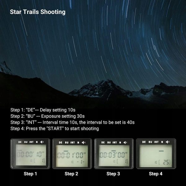 • czas opóźnienia wyzwolenia migawki: 0s – 99 h 59 min 59 s