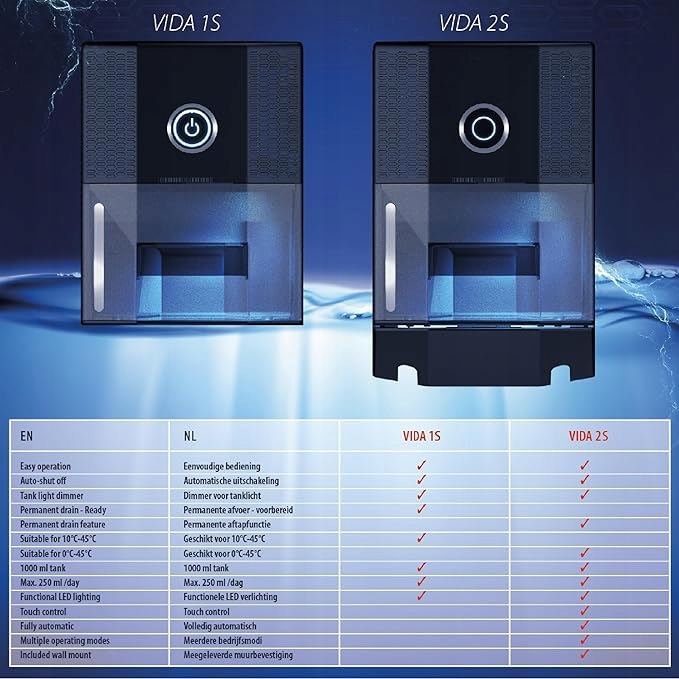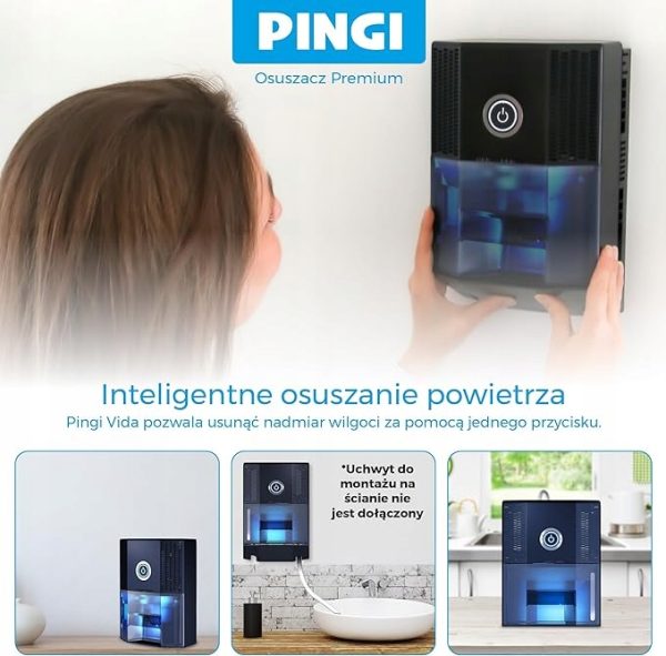 - POCHŁANIANIE 250 ML DZIENNIE: Nasz osuszacz elektryczny usuwa do 250 ml wody dziennie, zapewniając świeże środowisko bez gromadzenia wilgoci. PINGI Vida ma panel dotykowy. Po podłączeniu adaptera Vida przejdzie w tryb gotowości.