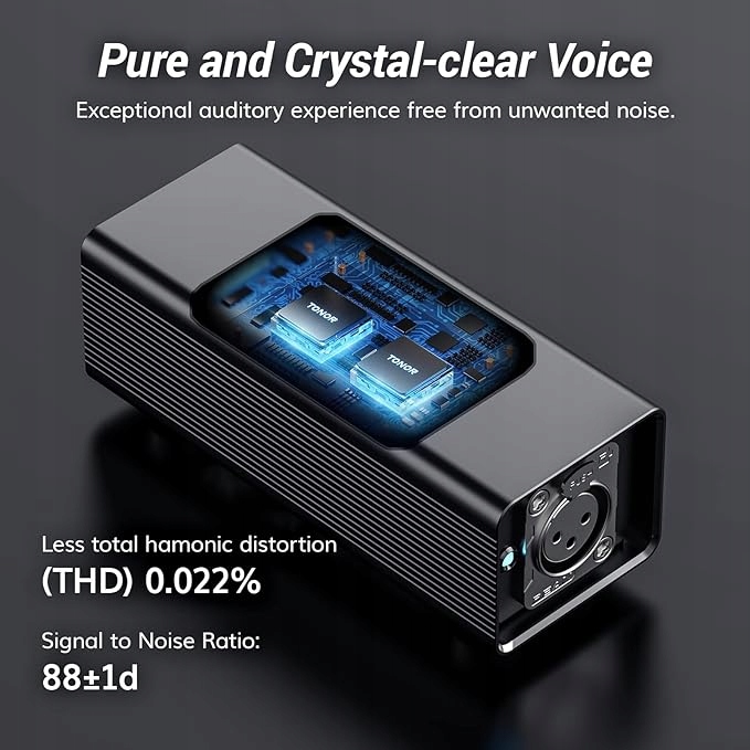 - Czysty dźwięk: Dzięki zaawansowanej konstrukcji obwodów, przedwzmacniacz mikrofonowy TA20 przekłada się na mniejsze całkowite zniekształcenia hamoniczne (THD) 0,022%. Dzięki wysokiemu współczynnikowi SNR wynoszącemu 88±1dB, siła sygnału mikrofonu jest wzmocniona, zapewniając wyjątkowe wrażenia słuchowe, które są wolne od niepożądanych szumów i zakłóceń.