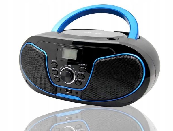 - Odtwarzacz CD Ładowany od góry Przenośny odtwarzacz CD z wyświetlaczem LCD i głośnikami stereo 2×2 W RMS, pokrętłem regulacji głośności, Kompatybilny z CD-MP3 / CD-R / CD-RW.